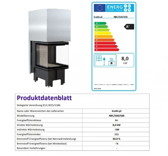 Der KRATKI NBC hat eine Nennleistung von 8 kW und einen beachtlichen Wirkungsgrad von 80 %. Durch getrennte Primär- und Sekundärluftzufuhr wird eine optimale Energieausbeute erzielt. Das spart Holz, schont die Umwelt und vermindert Verbrennungsrückstände.