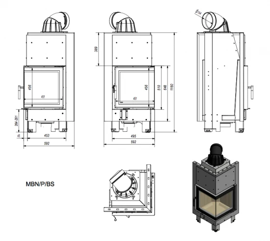 Eck-Kamineinsatz Kratki MBN/P/BS Schwenktür, rechts – 8 kW