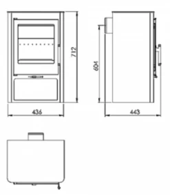 – Rauchrohranschluss: Ø 150 mm (nur oben möglich)
