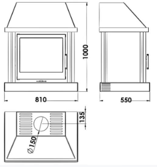 – Rauchrohranschluss: Ø 150 mm (nur oben möglich)