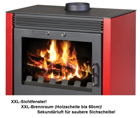 Kaminofen Victoria Rubin rot mit XXL-Sichtscheibe – 13kW