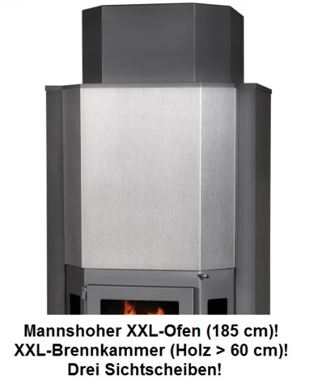 – Großer Feuerraum / große Holzscheite möglich (bis 60 cm)