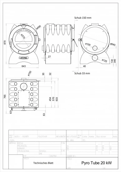 Pyro Tube ist ein Vergasungswarmluftofen mit Doppelmantel und zwei Kammern, die teilweise mit Rohrbögen gebildet und in direktem Kontakt mit Heißgassen sind. Die Heißgasse strömen von unten nach oben zwischen den Mänteln mit Rohren – so man erreicht eine große Warmtauschfläche. Erwärmte Luft dann strömt durch die Rohrbögen, und so man erreicht Warmtausch in die Umgebung. Dank dieser einzigartigen technischen Lösung, der Ofen erreicht sehr hoher Wirksamkeit, niedrigen Brennstoffverbrauch und minimale Schadstoffe in Abgase. Mit dem Ofen beheizt man: Hütten, Wochenendhäuser, Werkstätte, Familienhäuser, Wohnungen, Restaurants, Klubhäuser.